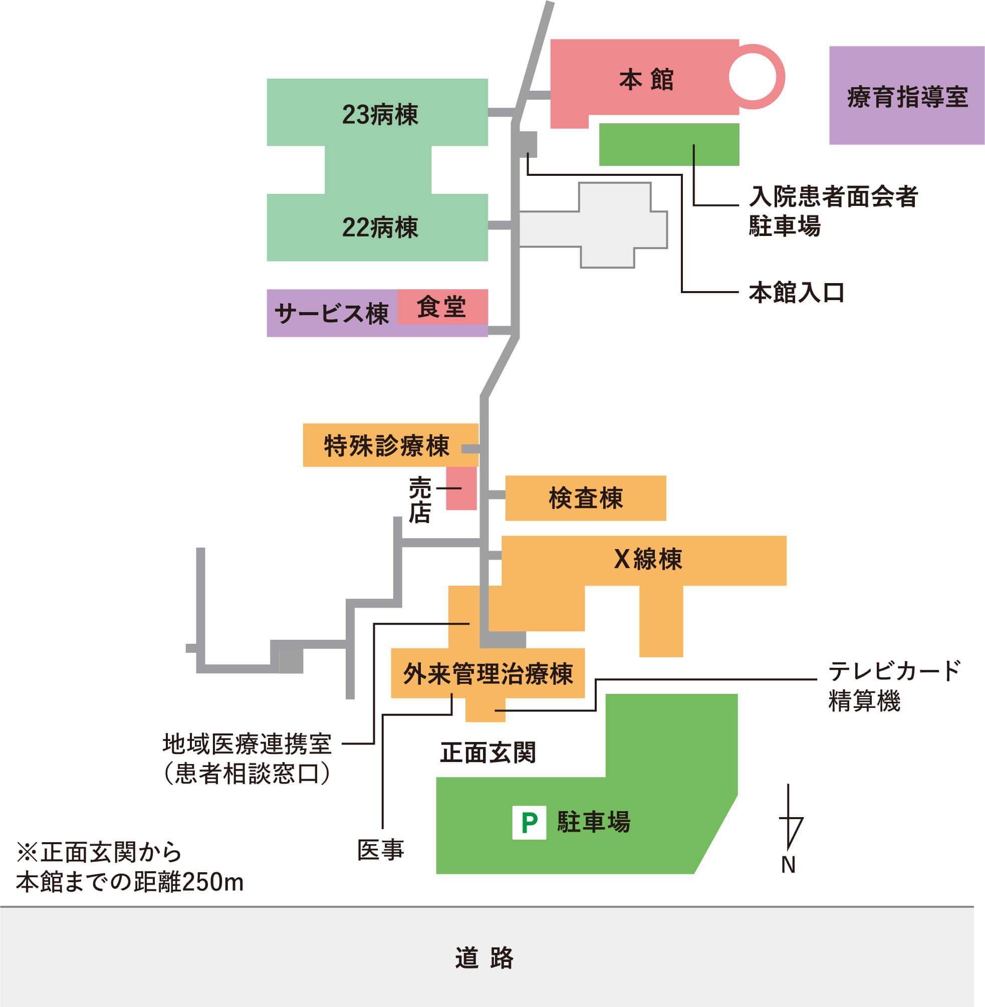 正面玄関前の駐車場は、外来患者様やお見舞いの方などの専用となっています。入院患者様の駐車場のご利用はご遠慮下さい。