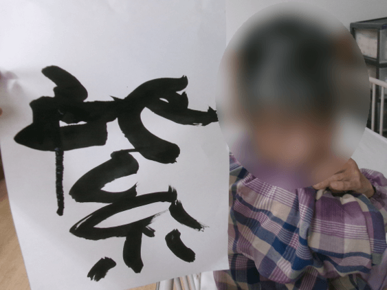 書き初めでは、墨汁を使って半紙に大きく文字や線を書いていきました。個性あふれる作品が完成しました。