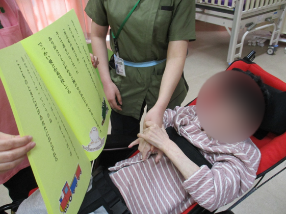昨年の秋から各病棟や合同療育で本作りを行っていました📖たくさんの物語や名言、歌の中から好きな言葉や文を抜き出して繋げていき、挿絵も付けてついに完成!という事でお披露目会を実施しました。利用者さんだけでなく読んでいる職員も思わず笑ってしまうようなオリジナリティ満載の本が完成しました。