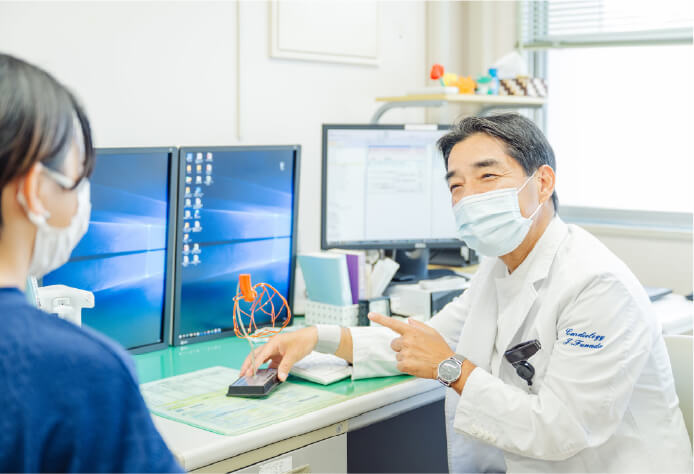 虚血性心疾患(狭心症・心筋梗塞)に対する冠動脈造影検査による診断・カテーテル治療や徐脈性不整脈に対するペースメーカー手術を実施しています。2022年から新しい心臓カテーテル検査機器(GE社製 IGS520)を導入し、より体に負担の少ない検査・治療が可能となりました。