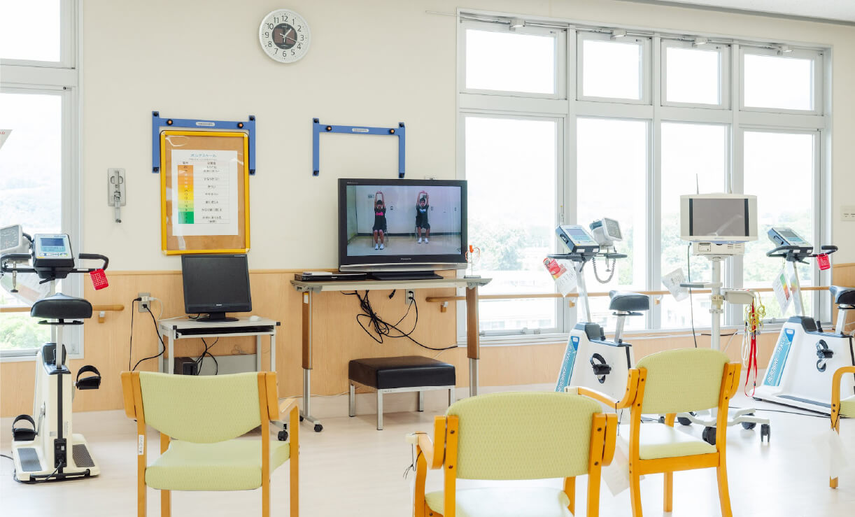 心不全のために体力が低下してしまった患者さんや、心臓手術後にリハビリテーションが必要な患者さんを中心に心臓リハビリテーションを行っています。多職種の専門のスタッフ(循環器内科医師、看護師、理学療法士、薬剤師、管理栄養士など)が協力して、患者さん一人一人の状態に合わせたリハビリを提供し、退院後もお元気な日常生活を過ごせていただけるように努めています。
