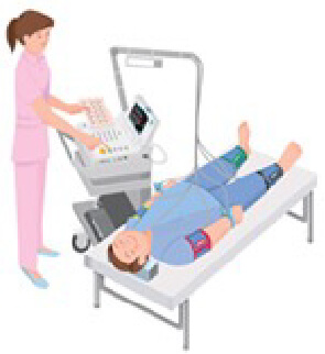 手と足の血圧の比較や脈波の伝わり方を調べることで、動脈硬化の程度を調べます。この検査を行うことにより動脈硬化(血管の老化など)の度合や血管年齢を調べることができます。