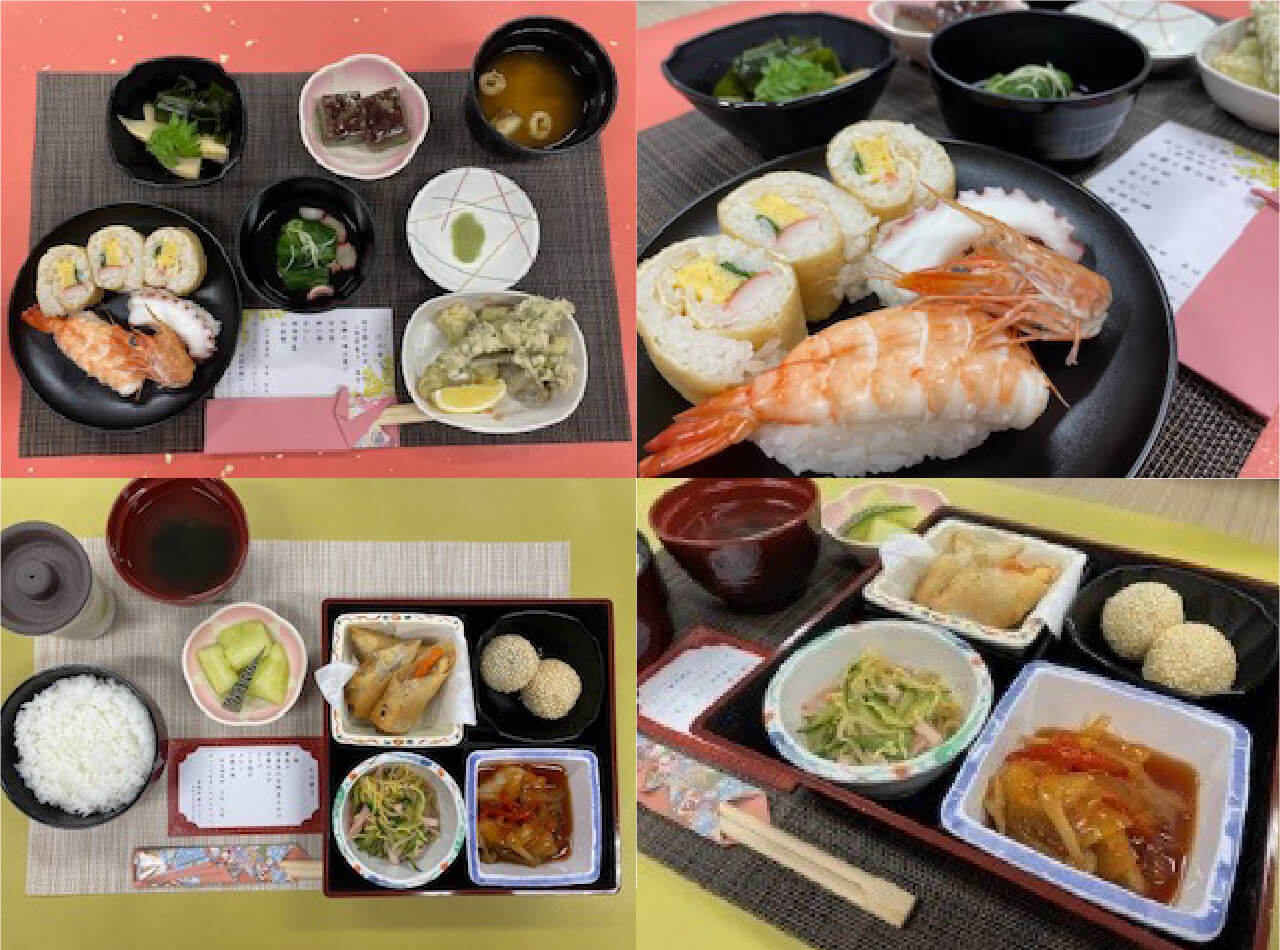 お花見や七夕、クリスマスなど行事・季節に合わせて行事食を提供し、四季折々のメッセージカードを添えています。