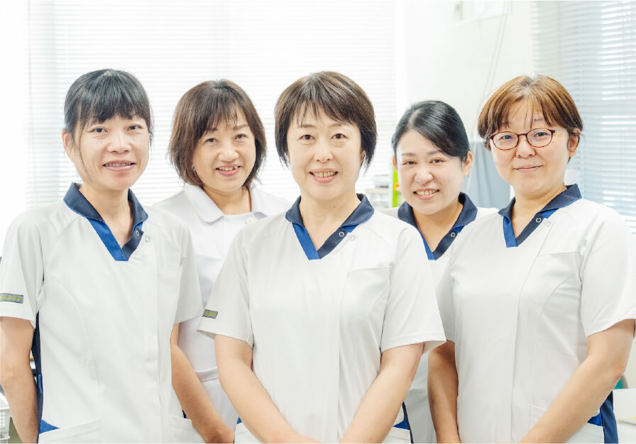 外来は、病院の窓口として、安全で信頼される医療を提供するために、外来患者さん一人ひとりに対し、誠意をもち優しく丁寧な対応をすることを心がけて、看護を行っています。外来受診の限られた時間ではありますが、いかに看護の視点で患者さんに関わることができるか、また、サービス向上のために何ができるかを考え行動しています。