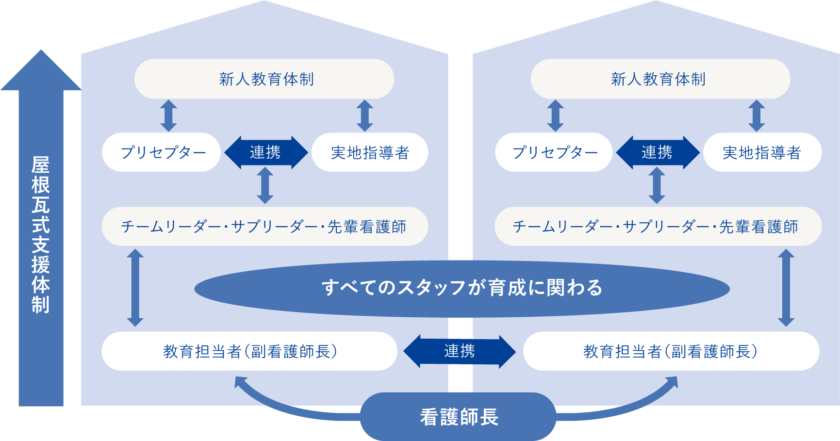 看護職員として必要な基本的知識、技術、態度を有し教育的指導ができる先輩看護師が役割を担います。