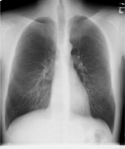当院では胸部のX線撮影検査で特性の異なる二つのX線検出部を有するFPD(フラットパネルディテクタ)にて一回のX線照射で胸部、軟部、骨成分の画像を得ることで診断の向上につながっています。