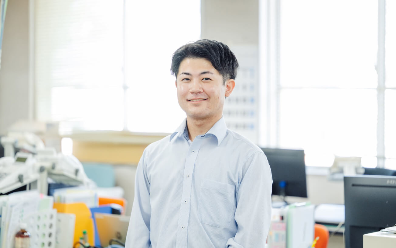 私は、契約係として物品の購入に関する業務を担当しています。契約書の作成や見積書の取得・納品や検収作業などを通じて医療現場が円滑に業務を遂行できるように務めています。また、有給休暇を活用してプライベートの時間を有効的に活用できるように心がけています。